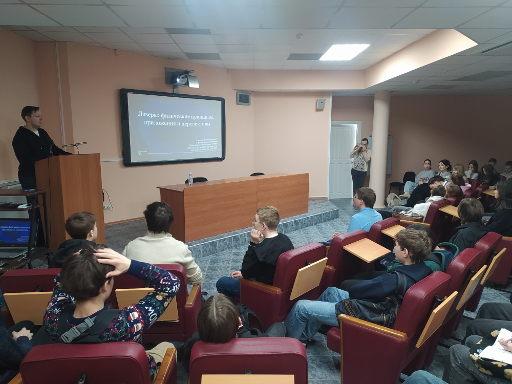 12 февраля 2026 года 8М класс побывал в Выставочном зале СО РАН на лекции «Лазеры: физические принципы, приложения и перспективы». Лектор – Антон Олегович Макаров (Институт лазерной физики СО РАН).
